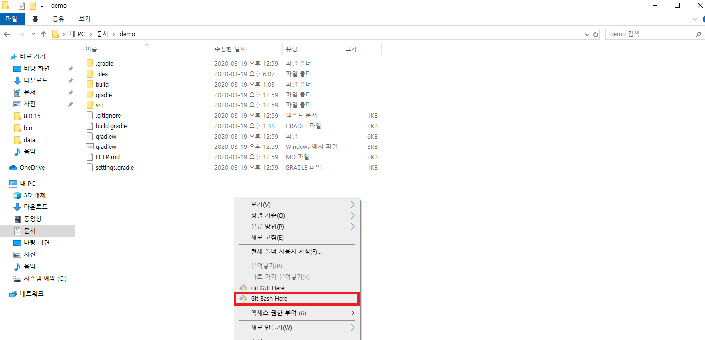 Git Bash Here을 선택해 Git Bash를 실행합니다.