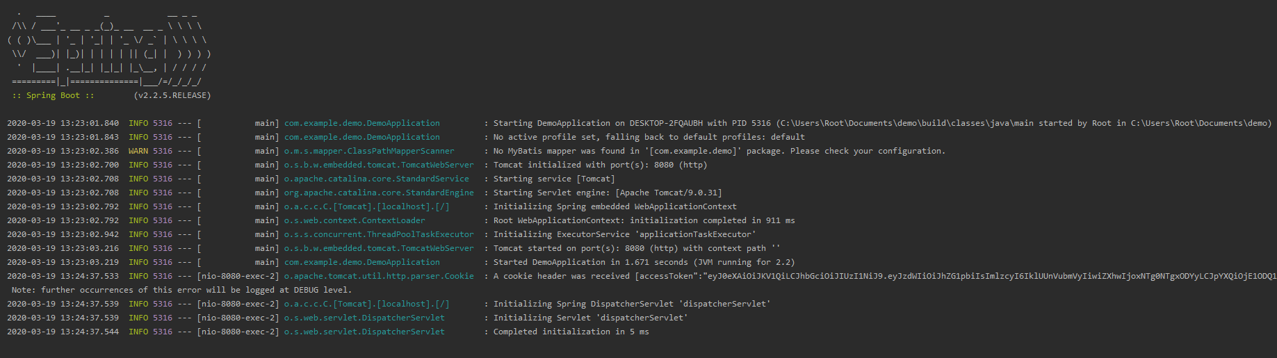 1-9. Application을 Run하면 아래와 같이 로그가 출력됩니다.