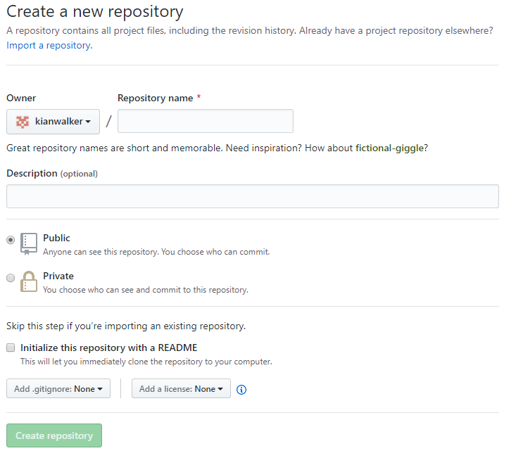 3. repository 정보를 입력한 후 Creat repository를 클릭하면 생성됩니다.